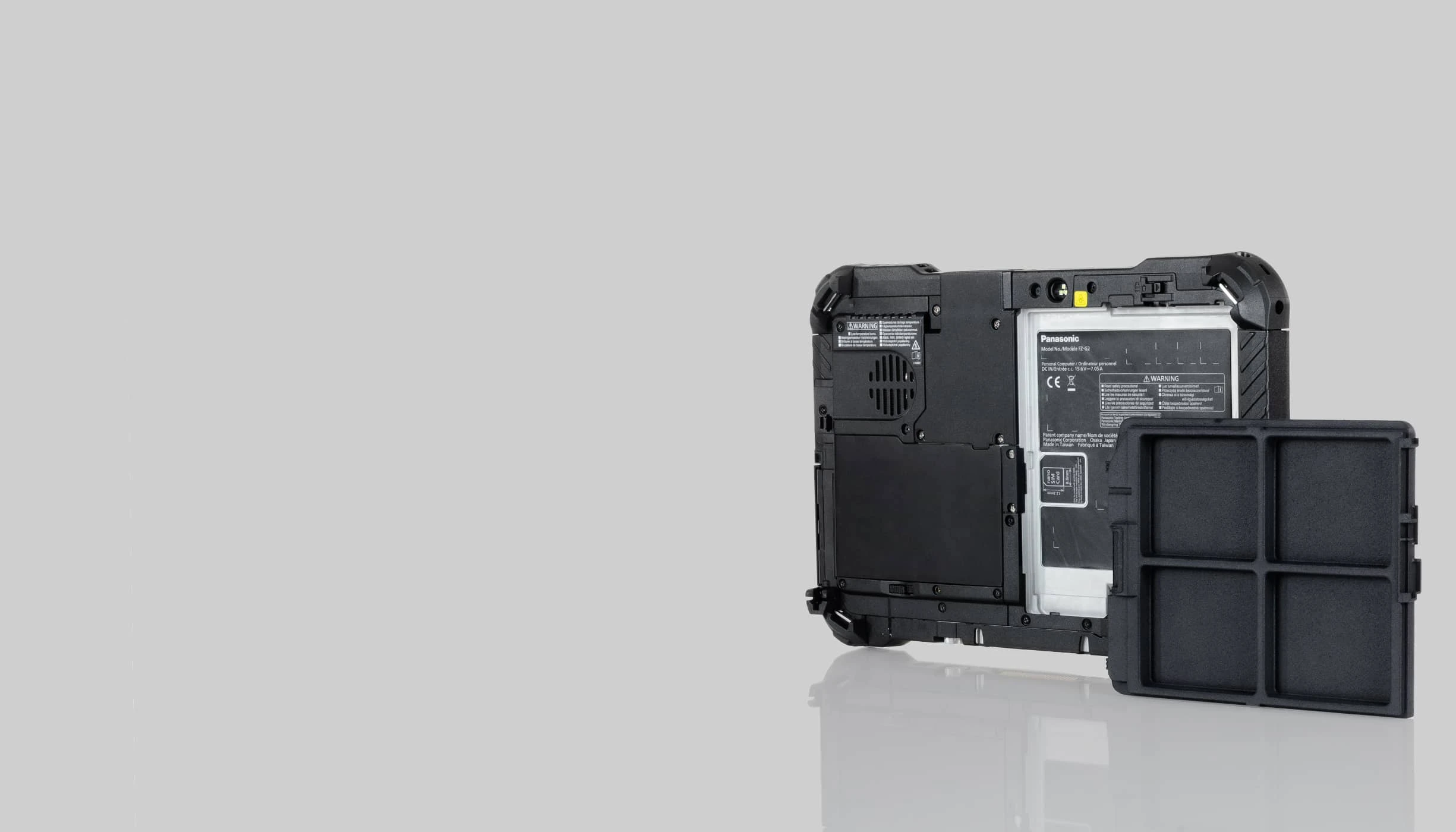 operating without battery) - Seals the battery connector of the tablet (splash water tested)