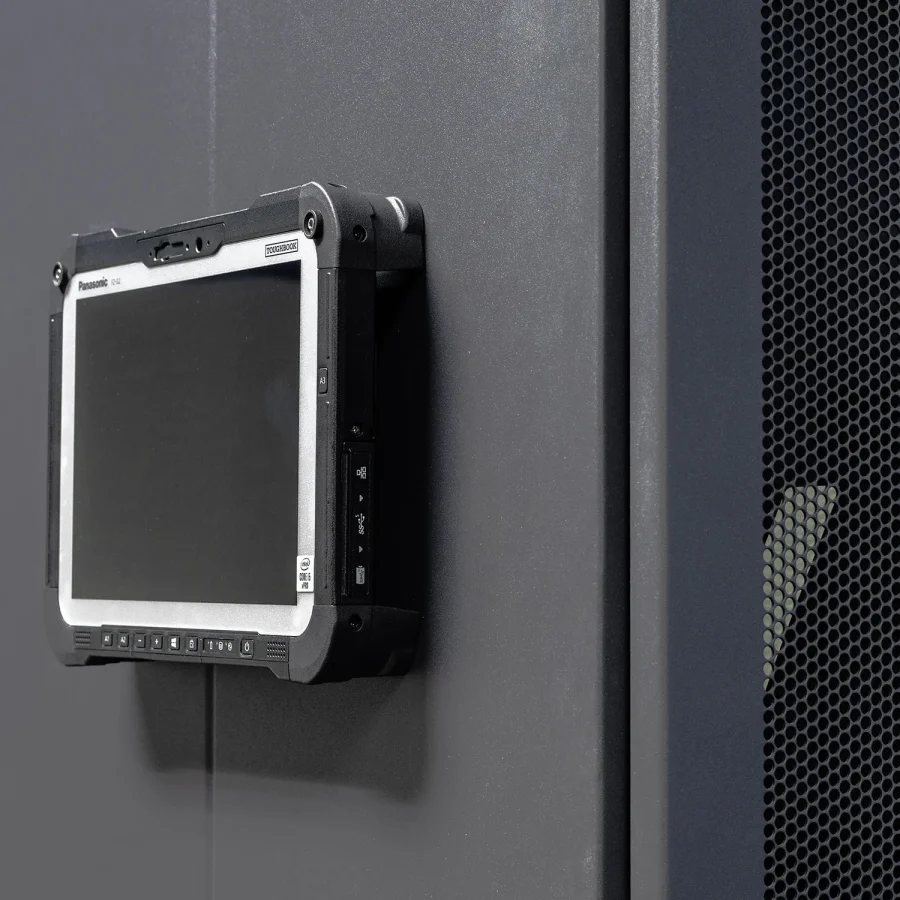 Magnets maintain a horizontal tensile force to the supporting surface that corresponds three times to the weight of the computer.
